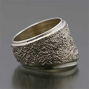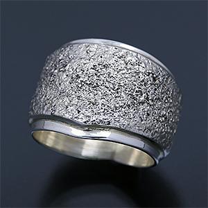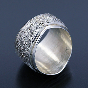 | Hopi/ホピ族のアーティスト Marlin Honhongva/マーリン・ホンホングヴァに制作依頼をしたリングです。 素朴な風合いはシンプルで強い意味や主張を感じさせないデザイン、多くのスタイルに違和感なく馴染みやすい作品です。 シルバープレートに銀粉を焼き付けて独特の表情を演出しています。 | ||