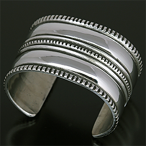 ナバホ族 Harrison Jim 2連チゼルワーク インゴットシルバー バングル メンズ [R28-113]
