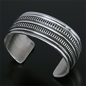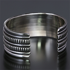 ナバホ族 Harrison Jim チゼルワーク インゴットシルバー バングル [R28-111]
