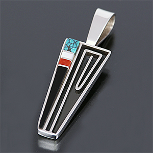 ナバホ族 Albert Nells マルチカラー(Jet) インレイ ペンダント [R28-291]