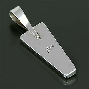 | NAVAJO/ナバホ族のアーティスト Albert Nells/アルバート・ネルスに制作を依頼をしたペンダントです。 独自の配色に洗練されたスタイリッシュな作品は長く愛されています。銀と黒のコントラストが飾りすぎず、バランスの良い作品に仕上がっております。 大人の気品さにワンランク上のスタイルを提案します。 | ||