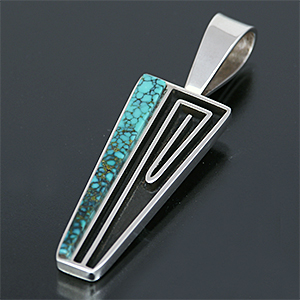 ナバホ族 Albert Nells チベットターコイズ インレイ ペンダント [R28-294]
