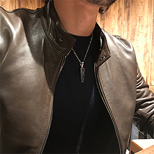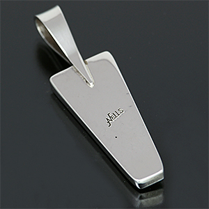 | NAVAJO/ナバホ族のアーティスト Albert Nells/アルバート・ネルスに制作を依頼をしたペンダントです。 爽やかさと清潔感を感じるチベットターコイズをセットしています。銀と黒のコントラストが飾りすぎず、バランスの良い作品に仕上がっております。 大人の気品さにワンランク上のスタイルを提案します。 | ||