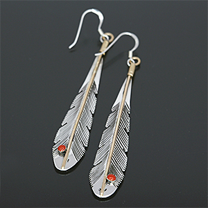 ナバホ族 Tanya Mace 12KGF ロングフェザー コーラル ピアス [R28-088]