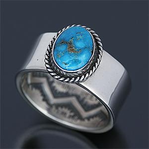ナバホ族 Sunshine Reeves 3/8” ブルージェム プレーン/スタンプ リング 21号 [R27-013]