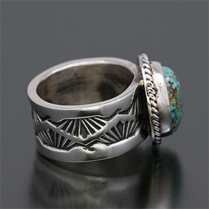 ナバホ族 Sunshine Reeves 3/8” ターコイズMt. スタンプ リング 8号 [R27-010]
