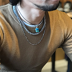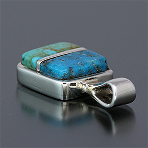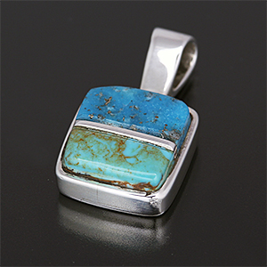 | Hopi/ホピ族のアーティスト Marlin Honhongva/マーリン・ホンホングヴァに制作依頼をしたペンダントです。 現代的なスタイルですが、マーリンにとっては親族から受け継がれる伝統的スタイルです。 2種類のターコイズだけで表現された落ち着いた作品、シンプルな中にもしっかりとした主張感を感じる配色です。 上品さと風格をお楽しみください。 | ||