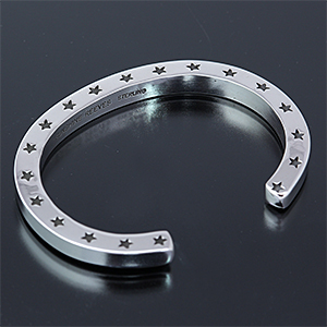 | NAVAJO/ナバホ族のアーティスト Sunshine Reeves/サンシャイン・リーブスに制作を依頼したバングルです。 #3スクエアワイヤーにスタンプを施して頂きました。スター/プレーンのシンプルなデザインで、飽きの来ないスタイルで仕上げて頂きました。 単体でお使い頂いてもよろしいですが、高さがありますので他のバングルとの重ね着けにも重宝するアイテムです。 | ||