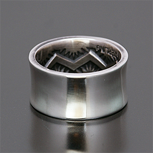 | NAVAJO/ナバホ族のアーティスト Sunshine Reeves/サンシャイン・リーブスに制作を依頼したリングです。 表面はプレーン、内側にスタンプを施して頂きました。また縁は緩いアールをつけて頂きましたので、肌あたりの良い柔らかい着け心地を感じて頂けます。 シンプルなリングですので、他の作品とも相性よくお使い頂けます。 | ||
