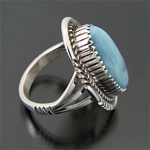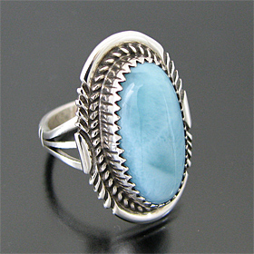 ナバホ族 ラリマー オーバル リング 15号 [NR-0027]