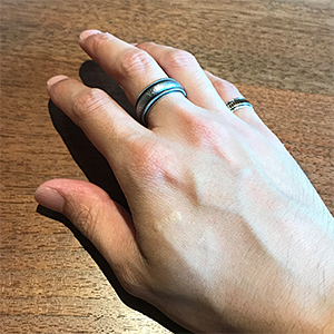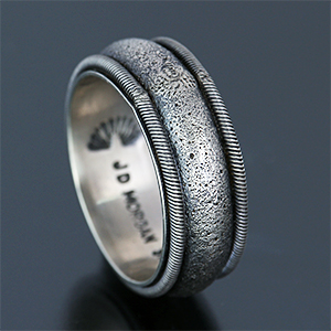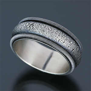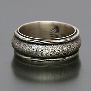 | Navajo/ナバホ族のアーティスト Jacob D. Morgan/ジェイコブ・モーガンに制作を依頼したリングです。 独特の表情をした質感はハンドテクスチャーではなく、サンドキャストによるハーフラウンドワイヤーとツイストワイヤーを組合わせた作品です。 丁寧な仕事と独創的なデザインからはモノ作りに拘る彼の性格が作品に反映されています。 | ||