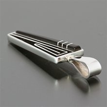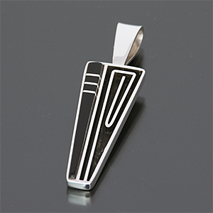 | NAVAJO/ナバホ族のアーティスト Albert Nells/アルバート・ネルスに制作を依頼をしたペンダントです。 ジェットの落ち着いた雰囲気がスタイルを引締めます。また3箇所シルバーで区切りを付けメリハリの効いた作品に仕上がりました。 銀と黒のコントラストが飾りすぎず、バランスの良い作品に仕上がっております。 大人の気品さにワンランク上のスタイルを提案します。 | ||