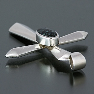 | Navajo/ナバホ族のアーティスト Darryl Dean Begayに制作を依頼したペンダントです。 伝統的なスタイルでシンプルなプレーンクロスは断面が三角形の形状になっています。石は深みのあるニューランダーを使用し、落ち着いたシャープな印象の作品に仕上がっています。 トゥーファ―キャストによる独特の質感と鈍い光沢の表情を作り上げています。着けやすいサイズ感とクラシックで洗練されたクリーンな雰囲気をお楽しみください。 | ||