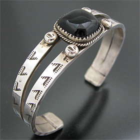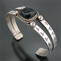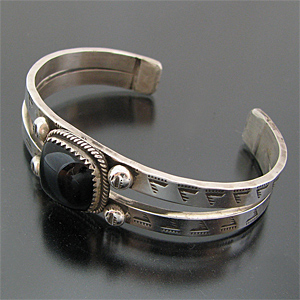 タオス プエブロ Sonny Spruce オニキス スタンプワーク バングル [TB-0005]