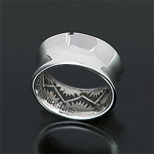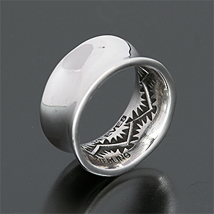 | NAVAJO/ナバホ族のアーティスト Sunshine Reeves/サンシャイン・リーブスに制作を依頼したリングです。 表面はプレーン、内側にスタンプを施して頂きました。また縁は緩いアールをつけて頂きましたので、肌あたりの良い柔らかい着け心地を感じて頂けます。 シンプルなリングですので、他の作品とも相性よくお使い頂けます。 | ||