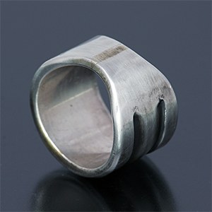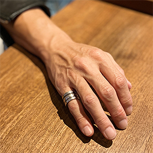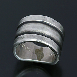 | Blackfoot/ブラックフット族のJames Faks/ジェームス・フォックスに制作を依頼しリングです。 12ga(約2.03mm)厚みのあるシルバープレートを使用した作品です。 ジェームスの特徴でもあるチェイシングと呼ばれる技術が用いられており、断面は緩い三角形になるように仕上げられています。 シンプルでスタイルを問わない着けやすさをお楽しみください。 | ||