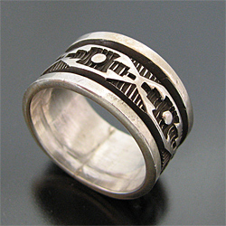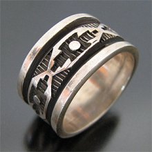 | NAVAJO/ナバホ族の人気アーティスト Troy Laner/トロイ・ラナーが制作したリングです。 スタンプワーク技法を用いて、ナバホラグのデザインが施されています。 日本でもお馴染みのアーティストで幅広いファッションに合わせやすく、シンプルなので他のリングともコーディネイトしやすいアイテムです。 | ||