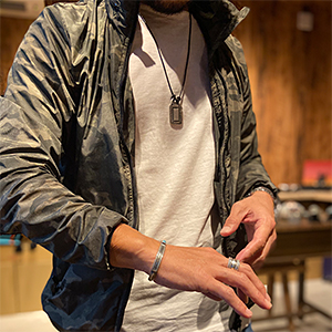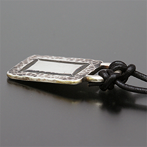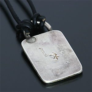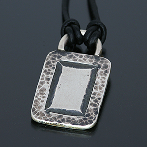 | Blackfoot/ブラックフット族のJames Faks/ジェームス・フォックスに制作を依頼しペンダントです。 タガネをハンマーで叩いて溝を制作することで生れる2本のラインが特徴的なシンプルな作品、ジェームスの代表的技術チェイシングと呼ばれる技法が用いられています。 縁は意図的に叩かれたハンマーの跡が印象的で、シンプルな中にも荒々しさとのバランスが考えられています。 経年変化と共に素朴な風合いをお楽しみください。 | ||