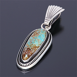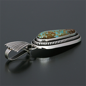 | Navajo/ナバホ族のアーティスト Leonard Nez/レオナルド・ネズに制作を依頼したペンダントです。 ナンバーエイトがしっかりと主張されるように、石の周りに溝を作り奥行きをもたらすシャドーボックスと言われる技法が用いられています。これは良質の石をシンプルに見せるレオナルドの確率されたスタイルの一つです。 チェーンホールもゆとりのあるサイズになりますので、お気に入りのチェーンなどと組合わせてお楽しみください。 | ||