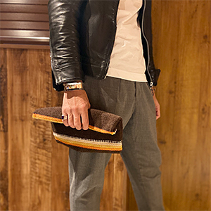 | アメリカはニューメキシコ州チマヨで昔ながらの製法で手織りされているTrujillo's/トゥルフィリオス社のクラッチバッグです。 昔ながらの製法で手織りされたブランケット生地は重厚でしっかりと目が詰まり、手作業により生まれるムラが経年変化と共に柔らかさを生み出していきます。 タブレット(iPad Pro 10.5インチ収納可能)、または財布、スマートフォンなどの小物を収納する丁度良いサイズ感が重宝します。バッグインバッグとしてもお勧めです。 | ||