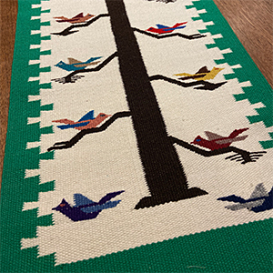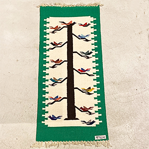 | アメリカはニューメキシコ州チマヨで昔ながらの製法で手織りされているOrtega's/オルテガ社のラグです。 昔ながらの木織機を用いて一つ一つ制作されています。 ナチュラルな素材と独特の配色はスペイン系移民とインディアンの文化が脈々と受け継がれた証でもあり、100年以上続くチマヨ・ブランケットの技術と誇りは現在も変わらず人々に愛され続けています。 こちらは"Tree of Life/ツリー・オブ・ライフ”と呼ばれるナバホラグに見られるデザインの一つで、生命の樹にたくさんの鳥たちが羽を休める様子が表現されています。 | ||