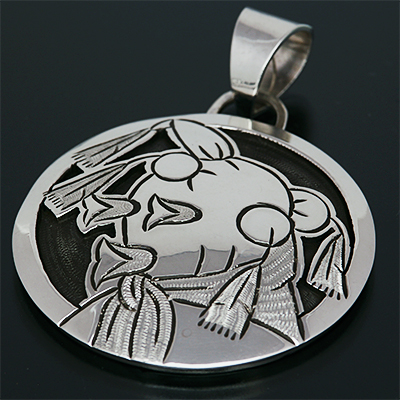 ホピ族 Emmett Navakuku マッドヘッド/レインクラウド オーバーレイ ペンダント [R31-087]