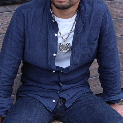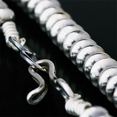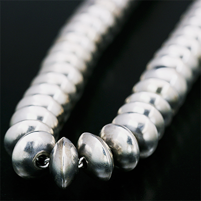 | Navajo/ナバホ族のJan Mariano/ジャン・マリアーノによるビーズチェーンです。 一つ一つ手作りでビーズを制作し、それを繋ぎ合わせた手間の掛かる作品です。 鈍い光沢が落ち着いた雰囲気を出し、使いやすい標準的なサイズになりますので幅広くスタイルをお楽しみ頂けます。 単体で合わされるのにもご活用頂けるアイテムですので、バランスを考えながらライフスタイルに取り入れてください。 | ||