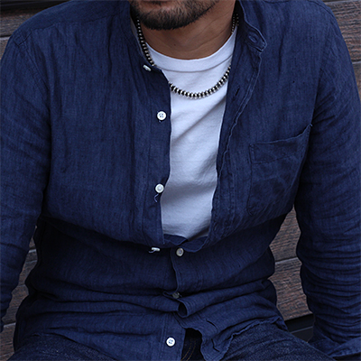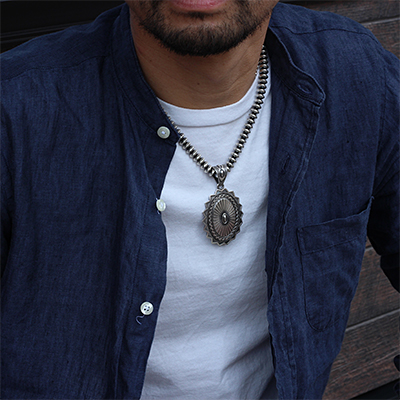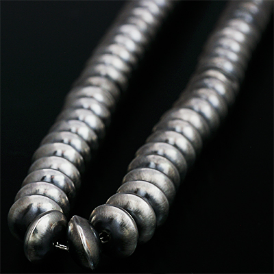 | Navajo/ナバホ族のJan Mariano/ジャン・マリアーノによるビーズチェーンです。 一つ一つ手作りでビーズを制作し、それを繋ぎ合わせた手間の掛かる作品です。 鈍い光沢が落ち着いた雰囲気を出し、しっかりとした主張感の感じられるサイズ感になります。 単体で合わされるのにもご活用頂けるアイテムですので、バランスを考えながらライフスタイルに取り入れてください。 | ||