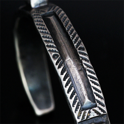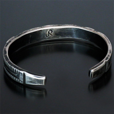 クリーク族 Jesse Robbins 2 シャイアン コインシルバー フラットトップ スタンプ バングル [R32S-017]
