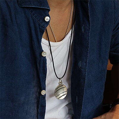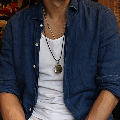 | Blackfoot/ブラックフット族のJames Faks/ジェームス・フォックスに制作を依頼したペンダントです。 スプーン型の独特の形状をしたこちらの作品は、デザインはチェイシングの技術によるもので、バチカンを通すホール部分はあと付けではなく一枚物による切り出しとなり、一枚のシルバープレートにロウ付けを極力行わないようテーマに制作を行っています。ジェームス・フォックスは素朴な作品の中に自身のジュエリー作りに対する思いを落とし込む唯一無地の作家です。 シンプルな美を追求するジェームスフォックスが手掛ける作品をお楽しみください。 | ||