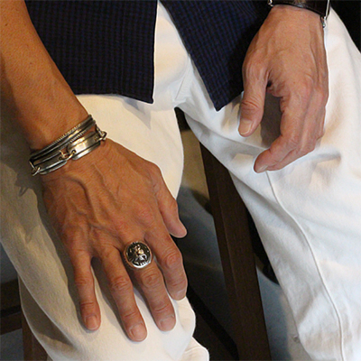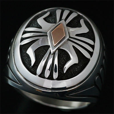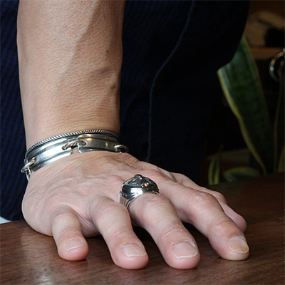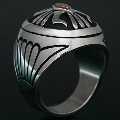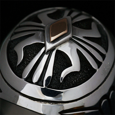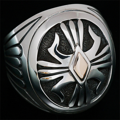 | NAVAJO/ナバホ族のアーティスト Howard Nelson/ハワード・ネルソンに制作を依頼したリングです。 パーツを組合わせ中空になるように仕上げられていますが、肉眼では分からないロウ付けの技術に正確なラインはハンドメイドとは思えない美しさです。ダイヤ型のパーツには14Kゴールドとシルバーによるダブルダイヤで仕上げて頂き、緩やかなドーム状のアーチが印象的な作品です。 現代のナバホジュエリーを象徴するデザインの一つケトー、溜息が出るくらい美しい仕上がりです。 | ||
