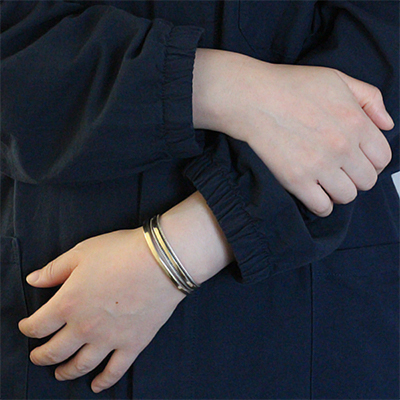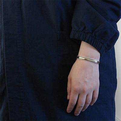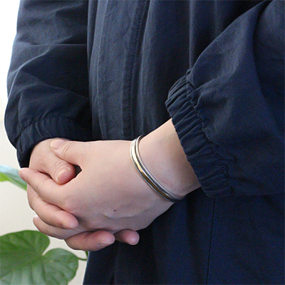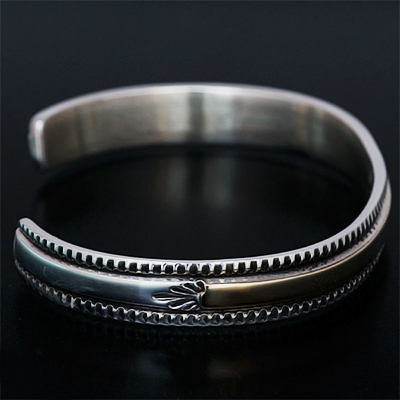 | NAVAJO/ナバホ族のアーティスト Bruce Morgan/ブルース・モーガンに制作を依頼したバングルです。 シルバーに14Kを組み合わせた作品、RIVER MAILの企画による伝統的スタイル"チゼルワーク"と呼ばれるタガネ(鉄の先を鋭く削ったノミ、彫刻刀のようなもの)を用いて仕上げていただきました。多くの作家が手掛けるチゼルワーク、ゴールド組合すことでオリジナリティーを演出。シンプルの中に映えるゴールドとシルバーの輝き、スタイルを選ばない合わせやすさは飽きることがなく、様々な場面で安心感を与えてくれる作品です。 毎日着ける方、オフの日に楽しむ方、それぞれのライフスタイルに合わせて取り入れ、ファッショのアイテムの一つ、またはお守りとして身に着けていただければと思います。 |