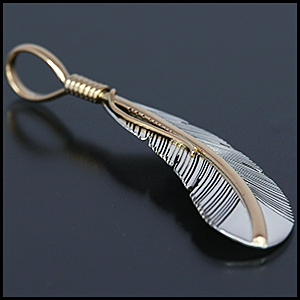 ナバホ族 Harvey Mace 12KGF イーグルフェザー ペンダント M/Left [R32S-160]
