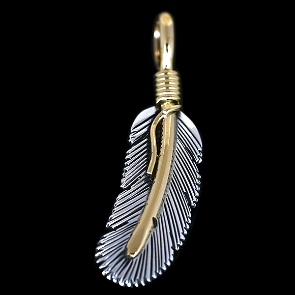 【再入荷】ナバホ族 Harvey Mace 12KGF イーグルフェザー ペンダント XS/左 チェーン付き [HM-TOP-XSL]