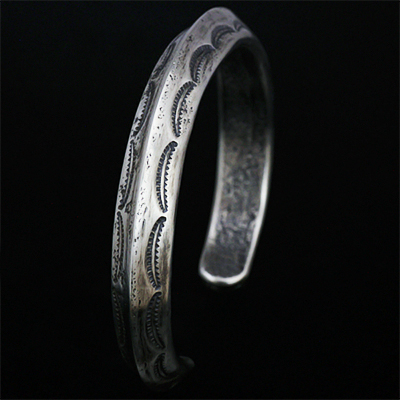 クリーク族 Jesse Robbins 3/8" トライアングル コインシルバー スタンプ バングル [R32S-117]