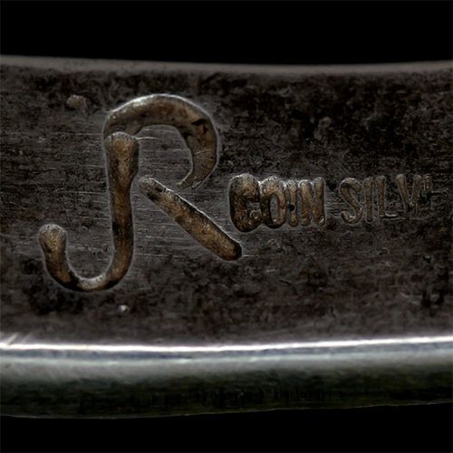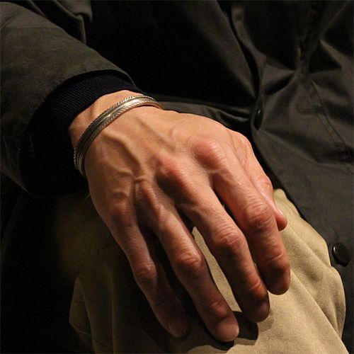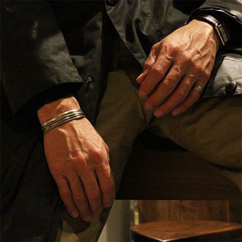 | Creek/クリーク族のアーティスト Jesse Robbins/ジェシー・ロビンズに制作依頼をしたバングルです。 コインシルバーから成形された地金はターミナルに向けて細くなっていく形状です。チゼルワークとやすりがけで表現されたデザイン、素材の良さとジェシーが手掛けるオールドスタイルが上手く組み合わさっています。 単体でお使い頂いくだけではなく、他のバングルと重ね着けされるのにもお勧めです。すっきりとシャープに納まる作品です。 古き良きスタイルを大切にしているジェシー・ロビンズが手掛けるジュエリーをお楽しみください。 | ||