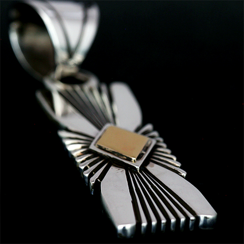 ナバホ族 Pat Bedonie 14K サンバースト 長方形 ペンダント [R32S-289]