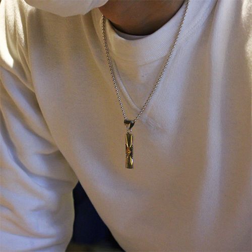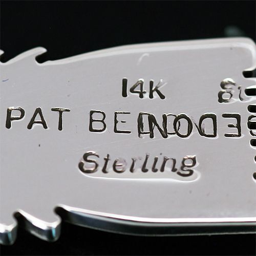| Navajo/ナバホの女性アーティスト Patricia Bedonie/パトリシア・べドニーに制作依頼をしたペンダントです。 中心から外側に向かって大きく広がるサンバースト(太陽光線)をイメージした代表的作品です。ダイヤ型のパーツは14Kとシルバーのダブルダイヤになります。またチゼルワークによる美しいラインは側面にも施されていますので、凹凸があり立体感が生み出されています。 男女問わずスタイルして頂けるサイズ感となり、ご自身用だけではなくギフトにもお勧めの作品です。 | ||