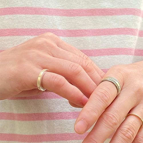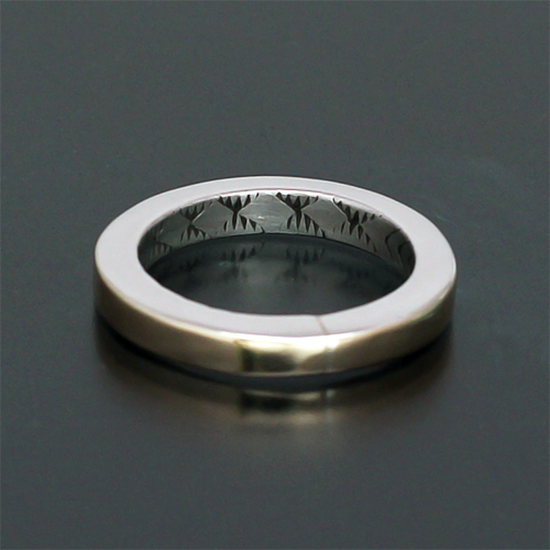 | NAVAJO/ナバホ族のアーティスト Bruce Morgan/ブルース・モーガンに制作依頼をしたリングです。 RIVER MAIL企画による#10スクエアワイヤーを使用した作品です。トップ部分は14Kをオーバーレイしています。表側は簡素な美が追及されたプレーン、裏側に4ダイヤ+アローのデザインを施して頂きました。 普段アクセサリーを着けられていない方でも洋服を選ぶ感覚でその日のスタイルに取り入れて頂ければと思います。 |