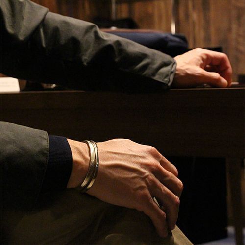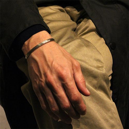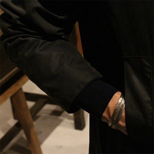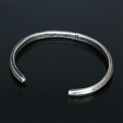 | Creek/クリーク族のアーティスト Jesse Robbins/ジェシー・ロビンズに制作依頼をしたバングルです。 コインシルバーから成形された地金は断面が三角形の形状になっています。細いボリューム感のあるトライアングルは他のバングルとの2連、3連など、重ね付けにも重宝する作品ですが、単体でも十分な存在感を発揮します。 古き良きスタイルを大切にしているジェシー・ロビンズが手掛けるジュエリーをお楽しみください。 | ||