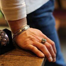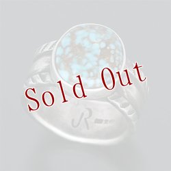 | Creek/クリーク族のアーティスト Jesse Robbins/ジェシー・ロビンズに制作依頼をしたリングです。 コインシルバーから成形された地金にチゼルワークによるデザインが施され、ジェシー所有のキャンデラリアをセットして頂きました。古い質感と石のカラー、そしてフォルムがバランスよく合わさっています。ジェシーの特徴でもある内側のエッジを落とした柔らかいアールが着けた時の肌あたりを心地よく感じさせます。 素材の良さとジェシーが手掛けるオールドスタイルが上手く組み合わさっています。ジェシー・ロビンズの世界観をどうぞお楽しみください。 | ||