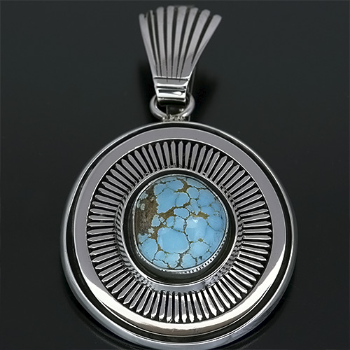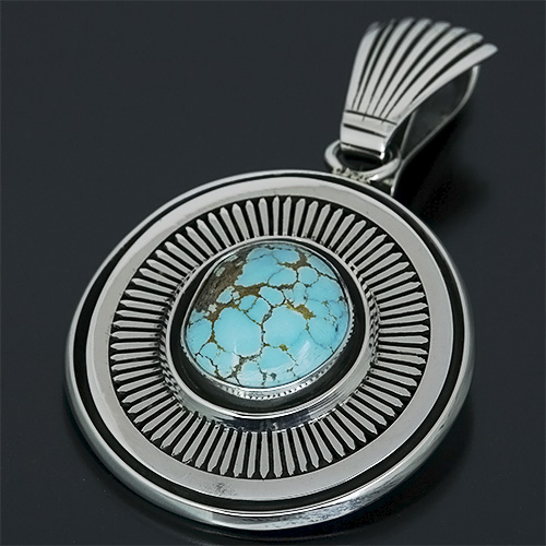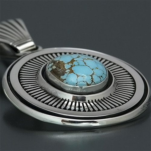 ナバホ族 Leonard Nez ナンバーエイト サンバースト オーバーレイ ペンダント [R33S-395]