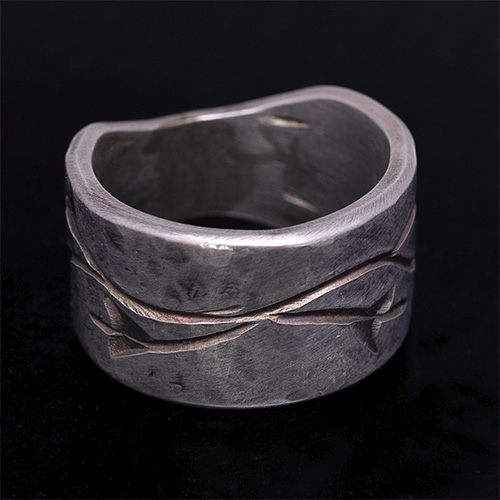 | Blackfoot/ブラックフット族のJames Faks/ジェームス・フォックスに制作を依頼したリングです。 地金を何度もパウンティングを施すことで生まれる凹凸、光の当たり具合でそれぞれの表情が生まれ作品に奥行きを感じます。ジェームスが好むリーフがデザインされており、柔らかい着け心地も魅力的です。 雰囲気の良さは使用することでより増していきますので、洋服を選ばない落ち着いたスタイルをお楽しみください。 |
