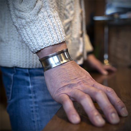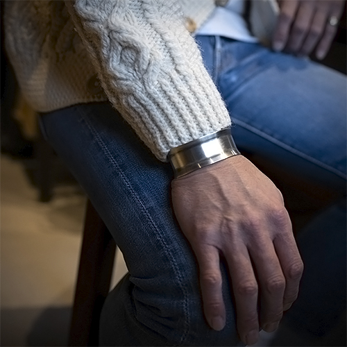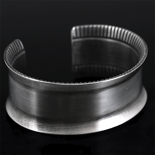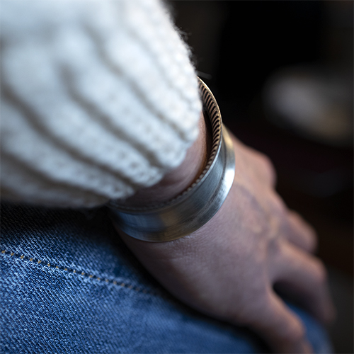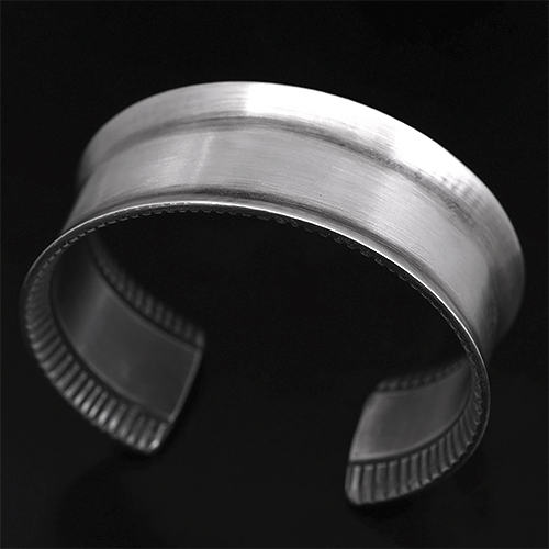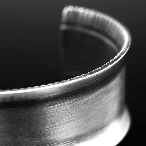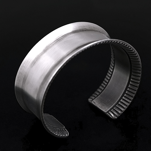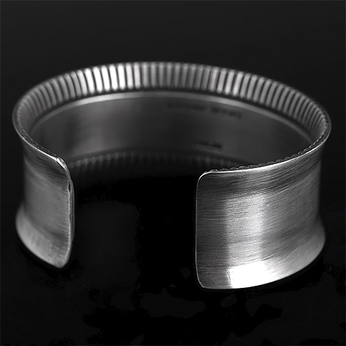| Navajo/ナバホ族のアーティスト Sunshine Reeves/サンシャイン・リーブスに制作を依頼したバングルです。 オールド感漂うマット仕上げが印象的です。表面はプレーン、裏はチゼルワークによるデザイン、RIVER MAILの企画によって制作して頂きました。サイドをカーブさせることで立体感を出し、シンプルなデザインはクリーンなイメージを生み出します。内側は鏨を用いてデザインが施されていますが、このチゼルワークはインディアンジュエリーでは最もポピュラーで伝統的スタイルの一つです。 古い質感を表現した作品、落ち着いた雰囲気は洋服のアクセントに静かにプラスされますので、主張しすぎないスタイルがポイントになります。 |