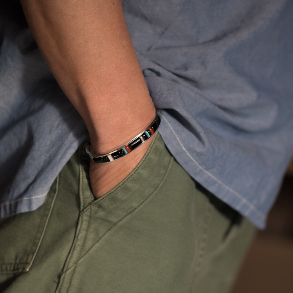 ナバホ族 Veronica Benally マルチカラー(ジェット) インレイ バングル [R35S-104]