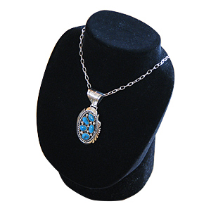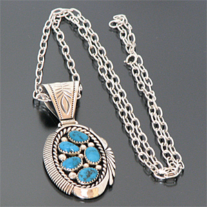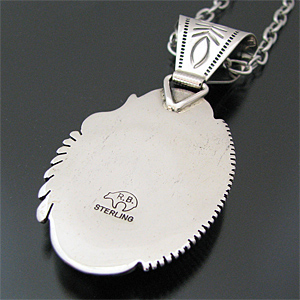 | Running Bear Studio/ランニング ベアーが制作したネックレスです。 とてもキレイなスリーピングビューティー(ターコイズ)が使用されており、ナバホ族らしいターコイズを大胆に使用した、存在感抜群のネックレスです! バチカン(チェーンを通す部分)部分が大きいので、太めのチェーンと組み合わせるのにもお勧めです♪ ネイティブアメリカンにとって神秘の石、また『空の石』と呼ばれているターコイズ。生命にパワーを与えてくれるお守りとして非常に人気の高い石です。 ※シルバーチェーンはついていません。 ご希望の方はシルバーチェーン・レザーネックレスコーナーからお選びくださいませ。 | ||
