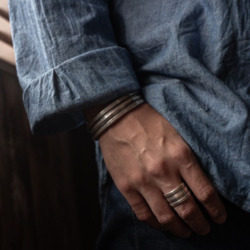 ブラックフット族 James Faks #1フラットワイヤー チェイシング バングル [R35S-384]