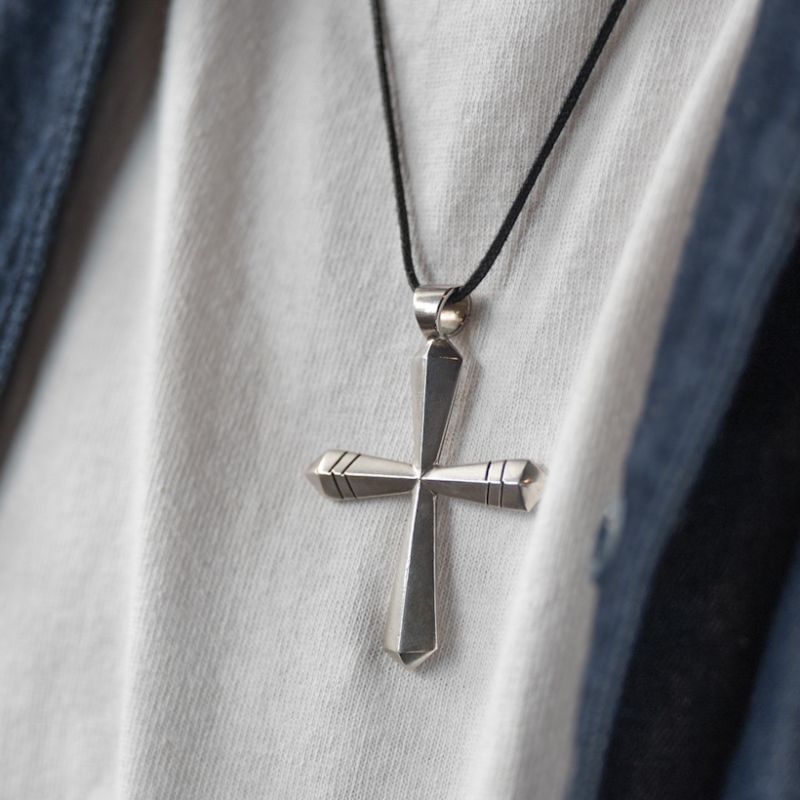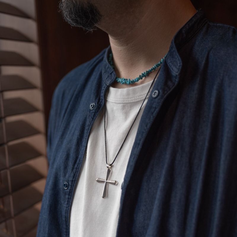 | NAVAJO/ナバホ族のアーティスト Darryl Begay/ダリル・ビゲイによるペンダントです。 トゥファーストーンと呼ばれる軽石に彫刻刀でデザインを刻み、その中にシルバーを流し込んで作るトゥファーキャストによる作品。独特の質感と鈍い光沢が印象的です。着けやすいサイズ感とクラシックで洗練されたクリーンな雰囲気をお楽しみください。 コットンレース付きで、バランスを考え少し長め(約80cm)の組み合わせです。チェーンは雰囲気のあるホピチェーンXSがおススメです。 |