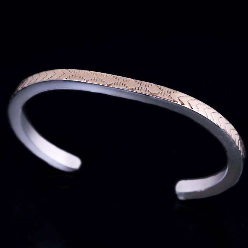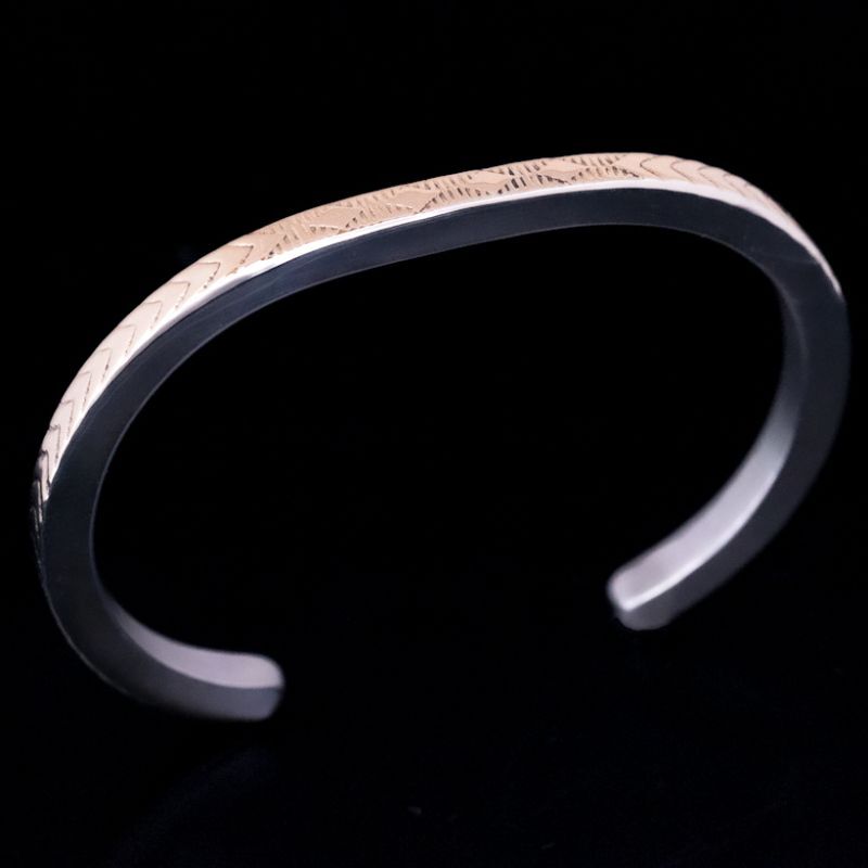 【再入荷】ナバホ族 Bruce Morgan #6SQ ダイヤ+アロー(14K)/プレーン(SS) バングル【RIVER MAIL企画】 [BM-006]