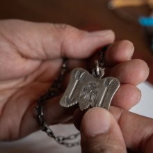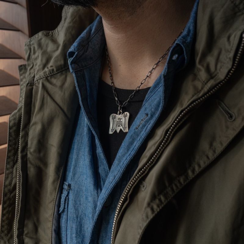 | Creek/クリーク族のアーティスト Jesse Robbins/ジェシー・ロビンズによるペンダントです。 コインシルバーから成形されたサンダーバード、落ち着いたスタンプによりクラシックなスタイルに仕上がっています。古い質感で表現されたサンダーバードはこのままでも深みがありますが、使用していくことによってより味わい深い作品へと変化していきます。 チェーンはホピチェーンXSと合わせていただくとでより雰囲気のあるスタイルを出すことができ、革紐またはコットンレースとの相性も良く組み合わせていただけますので、それぞれのスタイルをお楽しみください。(コットンレース、丸レースご希望の方は事前にお問合せください) |